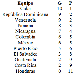 Los resultados de los juegos del martes 29 setiembre fueron los siguientes: México 5 El Salvador 0, lechada para Manuel Estrada. Rep. Dominicana 9 Guatemala 1. Panamá 9 Puerto Rico 7.