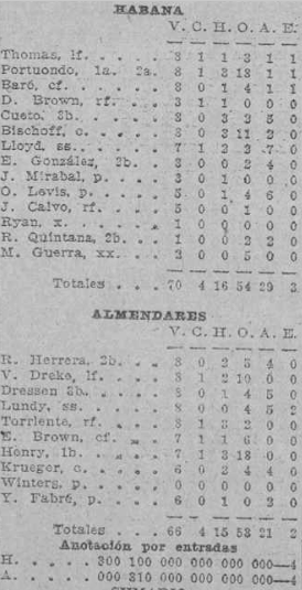 En 1902 jugó con el Fe, ocupante de la tercera posición, y promedió ,292 ofensivamente, pero sin lideratos, pero en 1903, con el Habana, volvió a batear desaforadamente. Líder de los bateadores (,330), en hits (57), triples (4), jonrones (2) y slugging (,464). Era la primera vez que integraba un equipo campeón de la temporada.