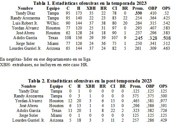 En el 2023 los cubanos se destacaron bastante, no puedo decir lo mismo del 2024. Basta con ver que uno solo, Yordan Álvarez, hizo el equipo de la Liga Americana para el juego de las estrellas. Para colmo, el mánager lo dejó batear una sola vez, una interrogante para mí. ¿Se habrá enojado Monsieur Bochy porque Yordan haya hecho swing en 3 y nada? Mis felicitaciones al tunero como quiera que sea, él se cuida y trata de no participar en los derby de jonrones. Seguro estoy que donde él lleva la bola, no son tantos los que pueden hacerlo, pero parece que no es devoto a este tipo de competencia.