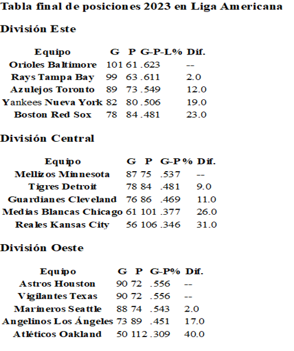 Llegado a este punto, creo que hay tres fuertes candidatos para llegar a la Serie Mundial representando la Liga Americana. Ellos son los Orioles de Baltimore, un equipo muy completo y balanceado; los Astros como ya dije, aunque todavía tienen que sobrepasar a los Marineros de Seattle, y el sorprendente conjunto de los Guardianes de Cleveland, otro equipo que sale a comerse el terreno y está al mismo nivel de ganados y perdidos de los Orioles.