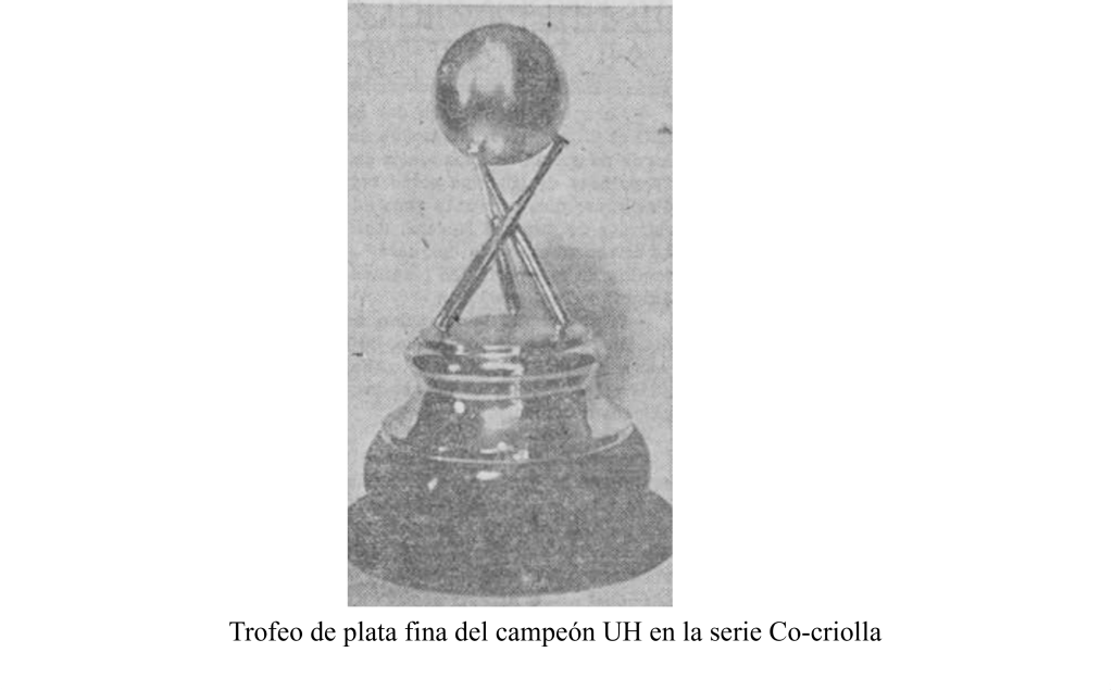 Así que todo quedaba listo para jugar la segunda serie co-criolla, así era llamada, lo que para mí no es más que un play off con nombre cubano. Estas series fueron organizadas en el pasado con los enfrentamientos entre el campeón de la Liga Nacional Amateur y el de la Liga Social, cuya última edición tuvo lugar en 1921 entre el Fortuna y precisamente los Caribes de la Universidad. El Teléfonos repetía y casi con la misma nómina, mientras que le tocaba a los Caribes sacar la cara por la vieja Liga. El primer campeonato de la liga Inter Social se lo habían llevado los Hermanos Maristas en 1927, mientras que el segundo y el tercero fueron victorias del Teléfonos.
